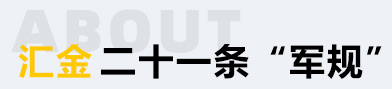 汇金21条“军规”诞生于2018年11月23日,是汇金集团企业文化的重要组成部分。“军规”中每一条理论均由核心关键词提炼而成,内容详实,通俗易懂,利于汇金员工方便、快捷地掌握和使用。